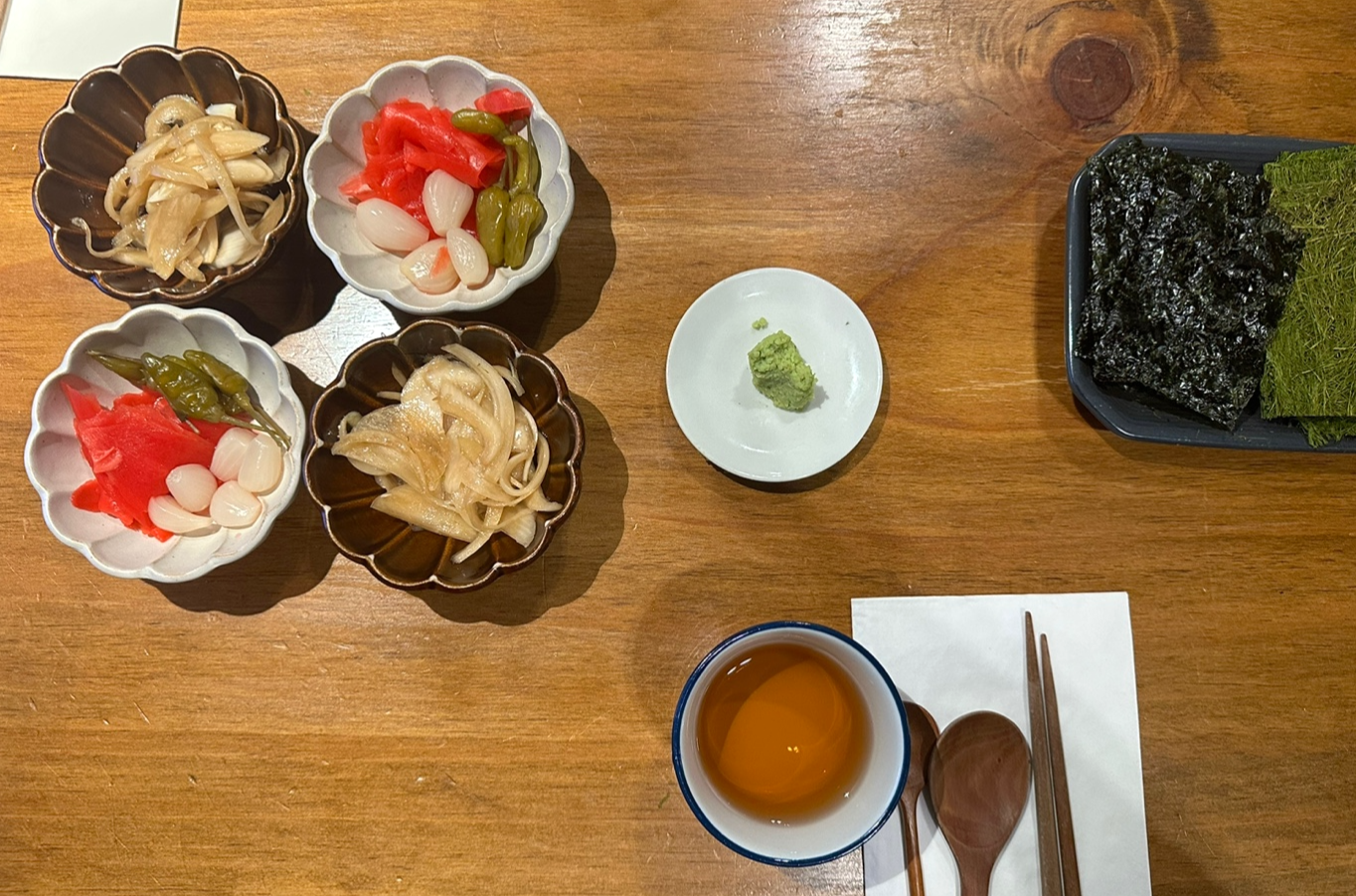 기본 세팅으로 다양한 초절임들과 함꼐 싸먹기 좋은 명란김과 감태가 나옵니다!